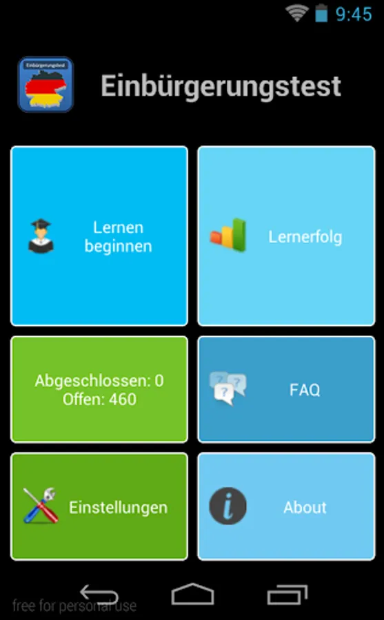 With this app you könnne optimally prepare for the naturalization test . Through a proven learning system , it is possible to learn all the necessary questions within the shortest possible time . Thus, an ideal preparation for the test is guaranteed.