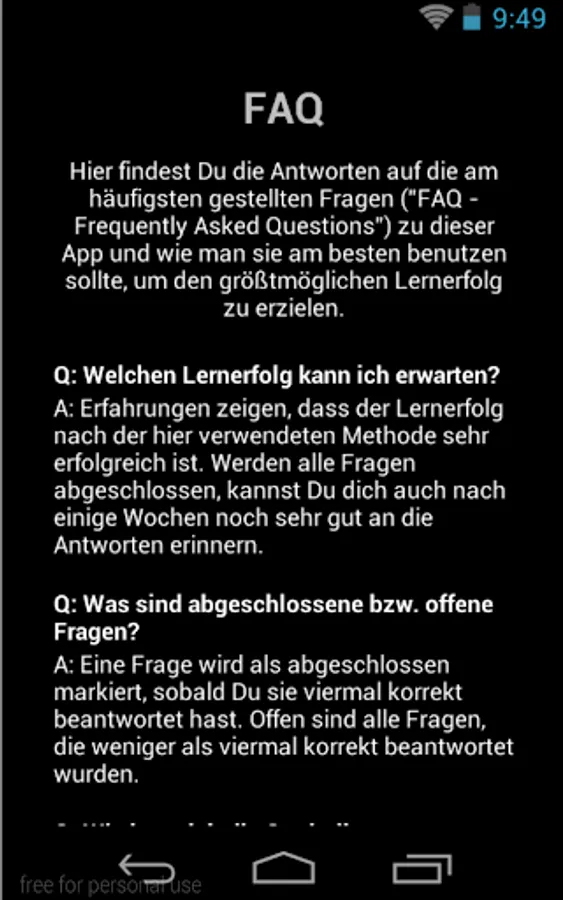 ✔ FAQ's with the most common questions about the app