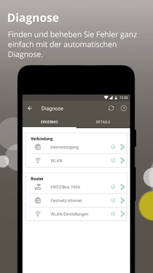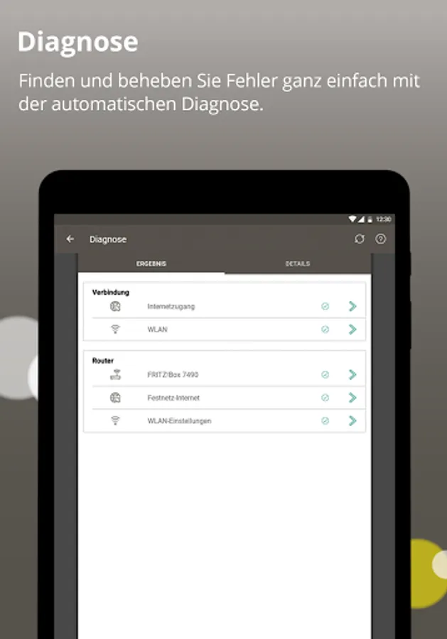 The "diagnosis" helps you to easily find faults or problems in the home network and to correct them automatically.