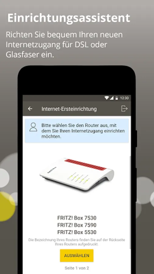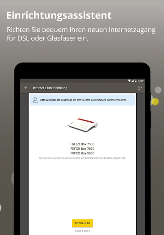 You can easily set up your new DSL or fiber optic connection with the “Internet Setup Wizard”. Please note that the app is only suitable for All-IP connections, but not for ISDN or analog connections.