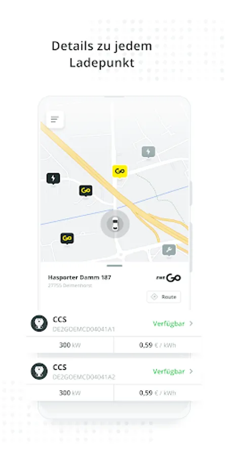 With the EWE Go app, you can easily find charging stations for your electric car. You can use the navigation function to be guided directly to the charging station you have selected. The EWE Go app gives you access to a charging network of around 400,000 charging points for your e-car across Europe.