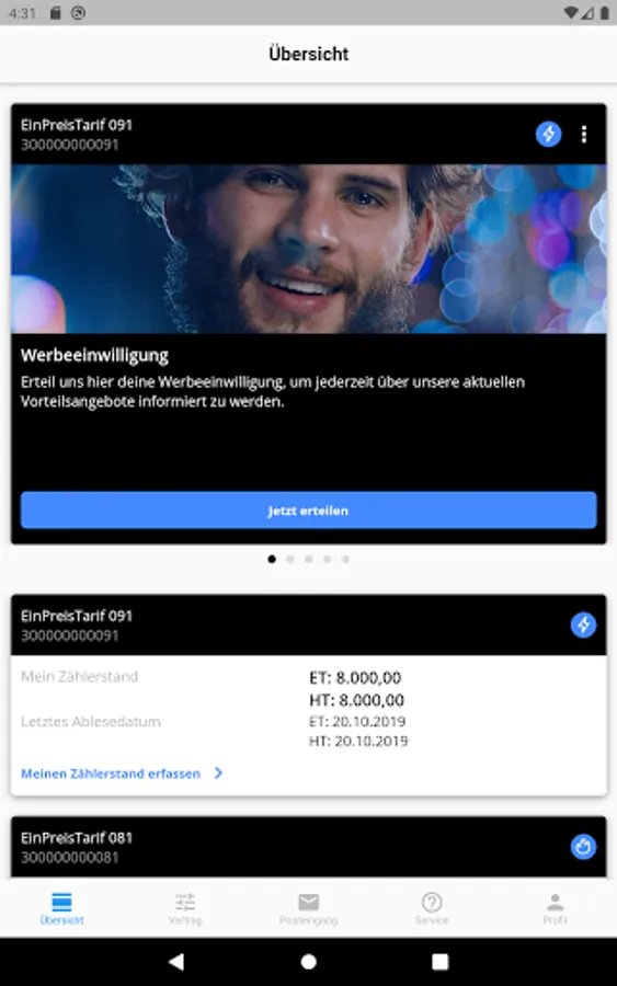 With the E WIE EINFACH app you have your customer account with you always and everywhere and you can keep an eye on your electricity, gas and/or heat electricity contract.