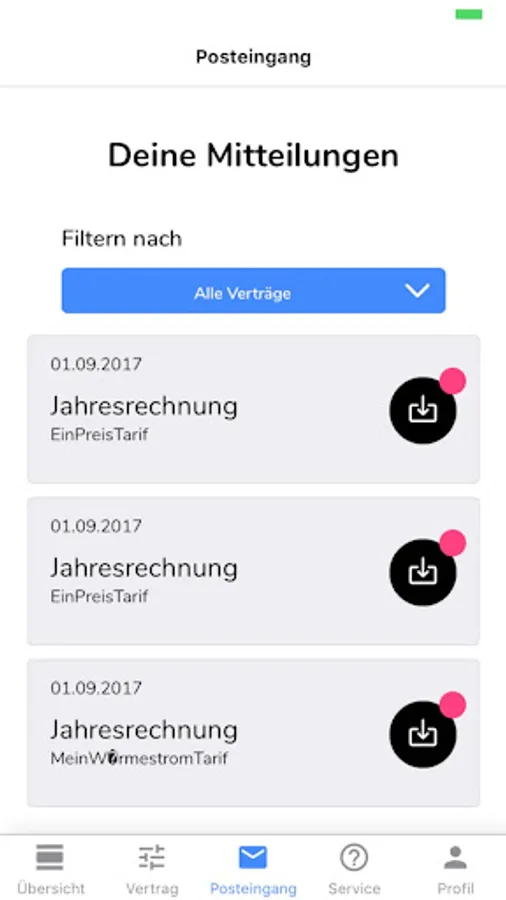• In the news feed you can keep an eye on all the current information about your contracts.