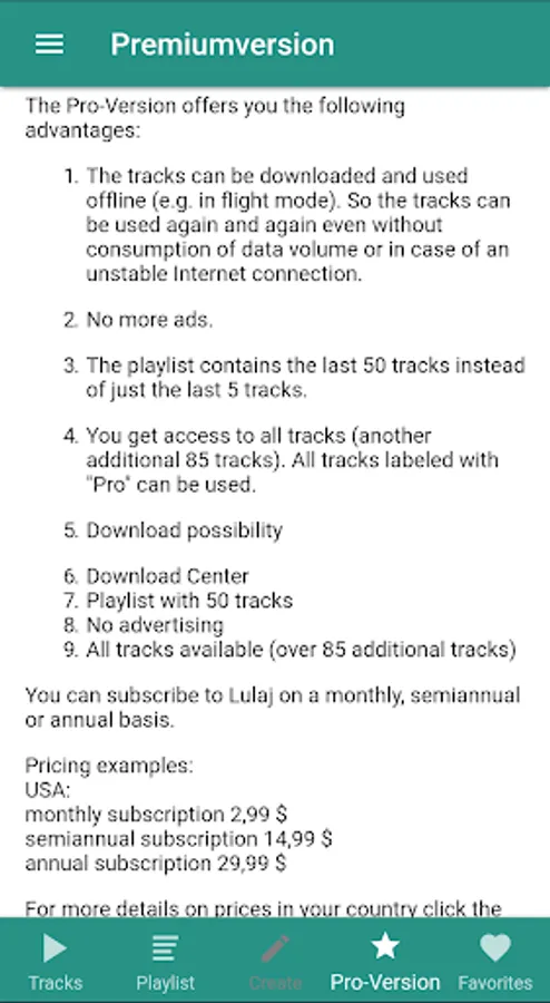 The Pro-Version contains another additional 86 tracks, is free of any ads and can be used offline.