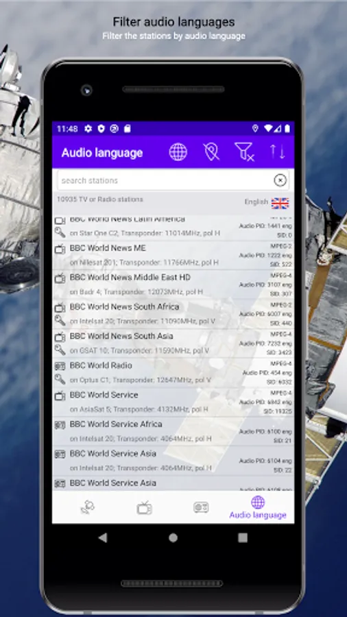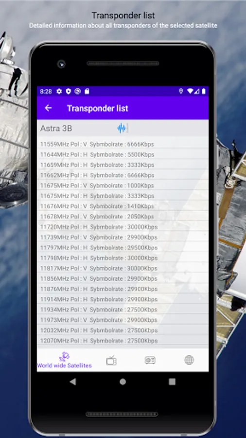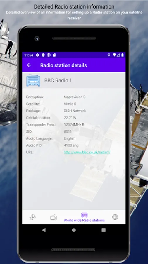 The app provides all the information you need to set up a TV or radio station on your satellite receiver.