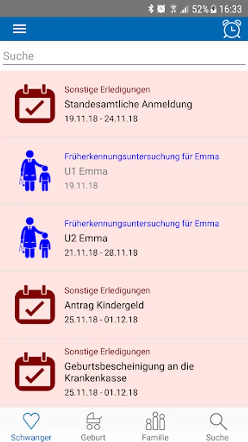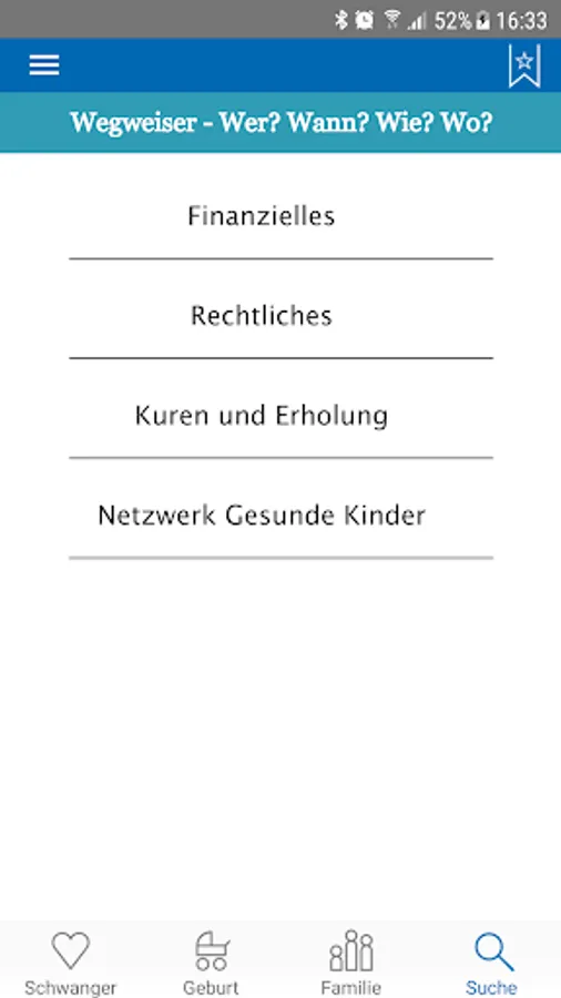 • Materials (In the app, the user can easily access important checklists, guidebooks and knowledge articles on pregnancy, birth, family time)