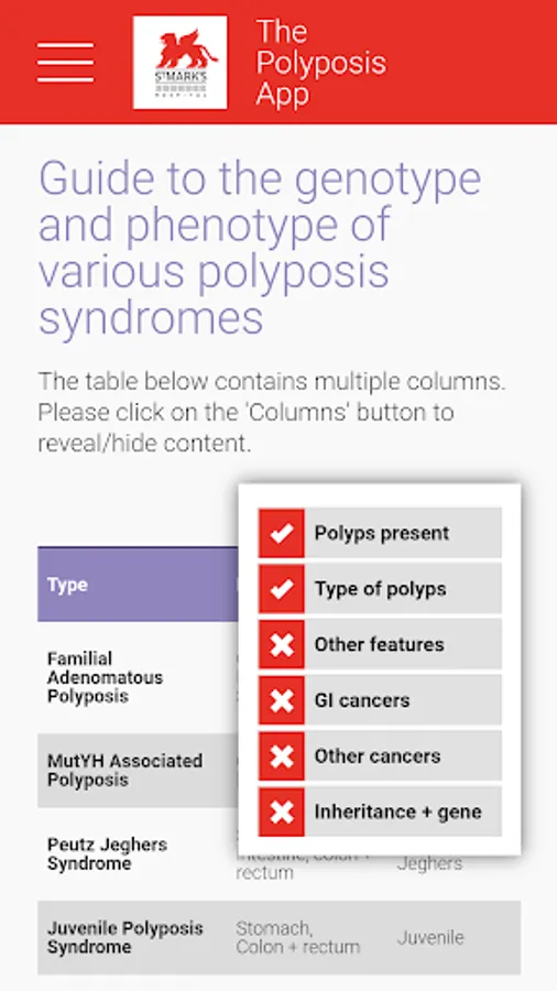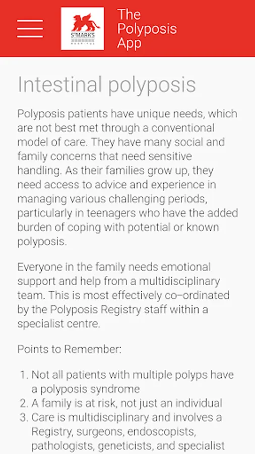 The Polyposis App is a reference guide for health care professionals containing disease descriptions and treatment options for the following polyposis related diseases:
