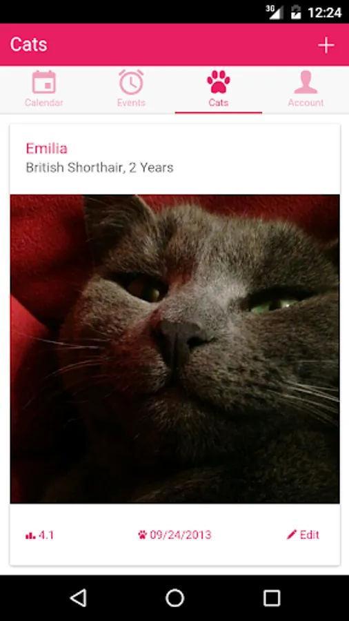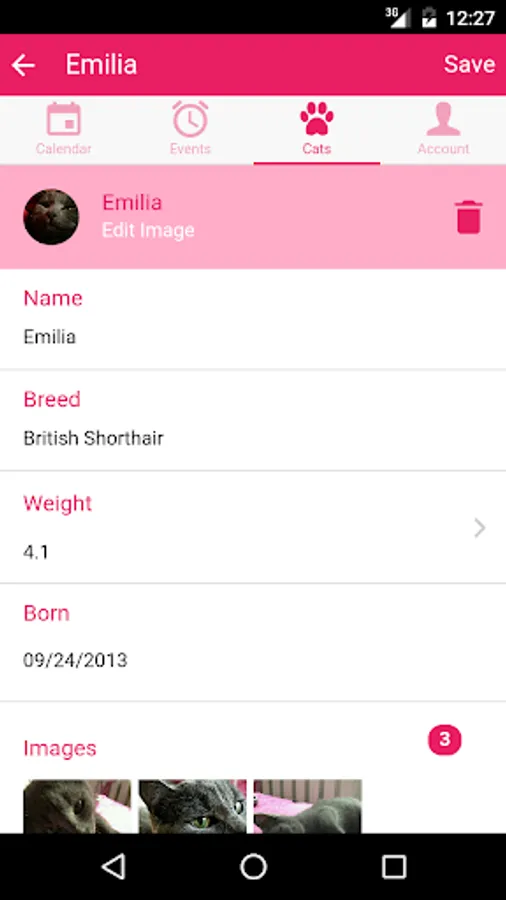 Furthermore, you can set other important data about your cat, such as name, breed, date of birth and the current weight.