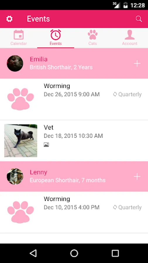 You can set recurring tasks such as worming, vaccinations or the application of an anti-tick agent and you will be easily remembered via push messages.