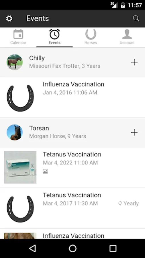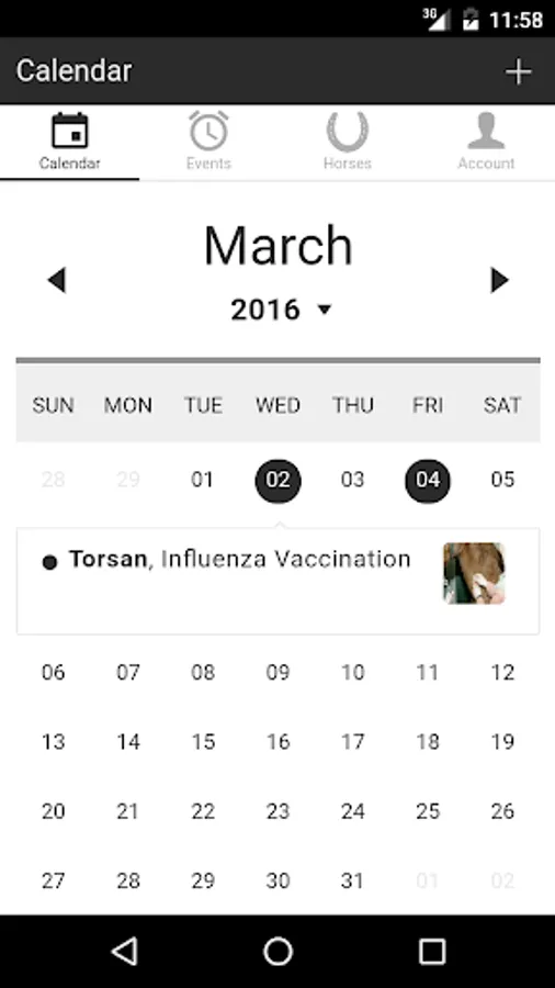 The "Horses" app is easy to use and gives you a quick overview of all regular appointments regarding your horses.