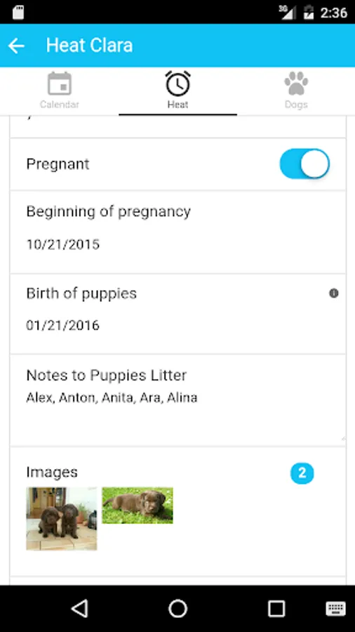Of course, with the "Puppy Planner", it is also possible to input several dogs at the same time, thereby optimizing the data overview of your breeding dogs.