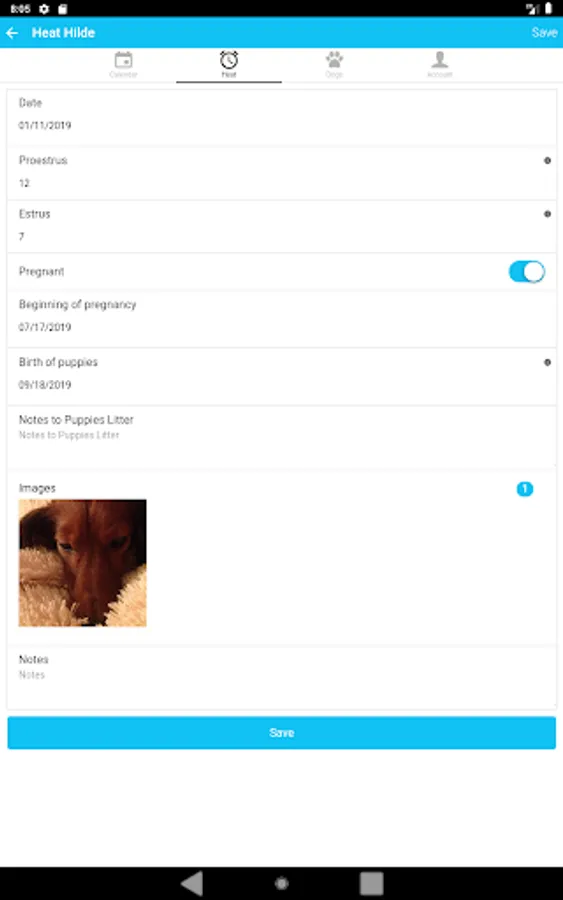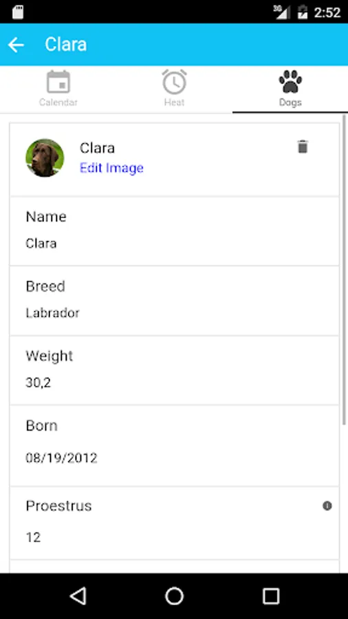 Furthermore, you can enter other important data about the dog, such as the name, breed, date of birth, and its current weight.