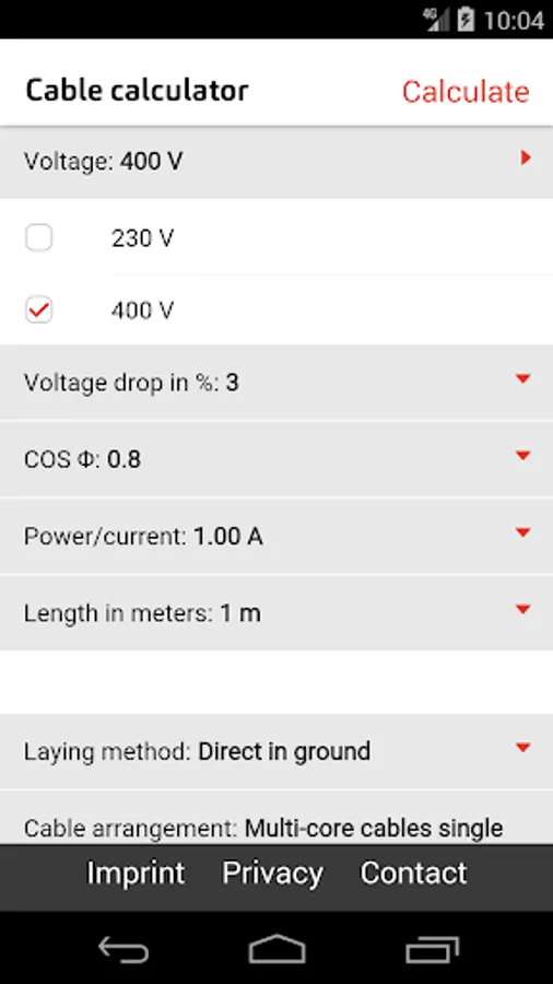 The cable calculator app is free of charge. We are unable to accept any liability for the correctness, completeness and topicality of the information contained in the calculator. The data calculated here are based on formulas of our own creation and fixed variables. We accept no liability for the calculated numerical values. We reserve the right to make changes at any time.