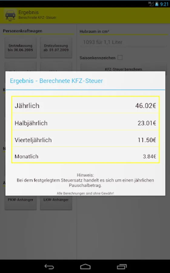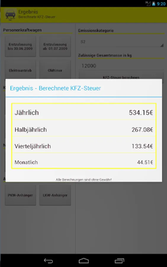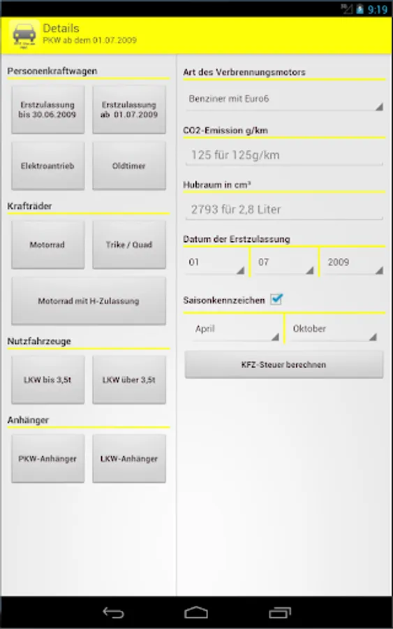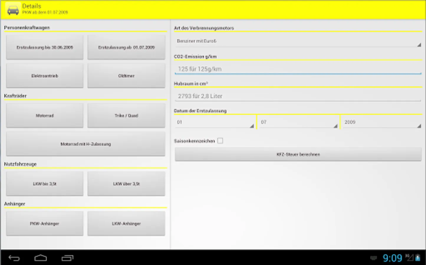 With the Car Tax Calculator Pro you can quickly and easily calculate the annual vehicle tax your vehicle registered in Germany.