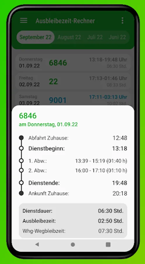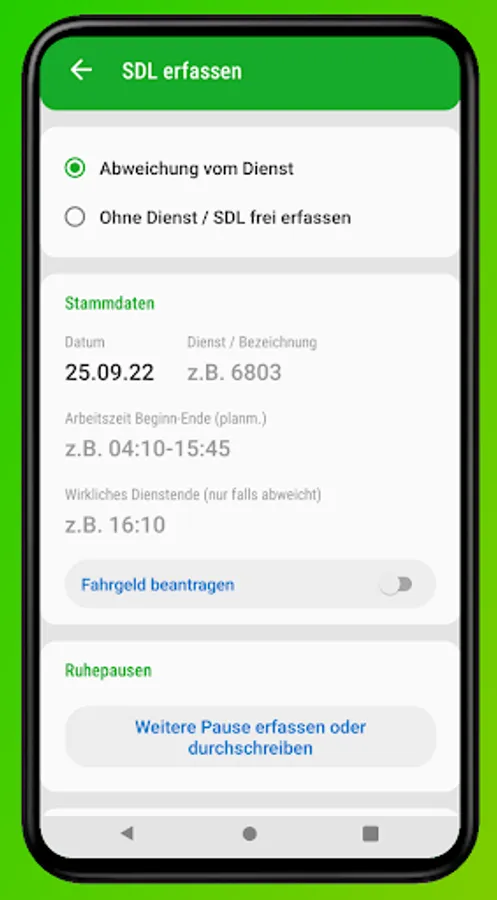Service recording app for Tf, Lrf and KiN from DB Regio to record shifts with absence times and output them for the form.