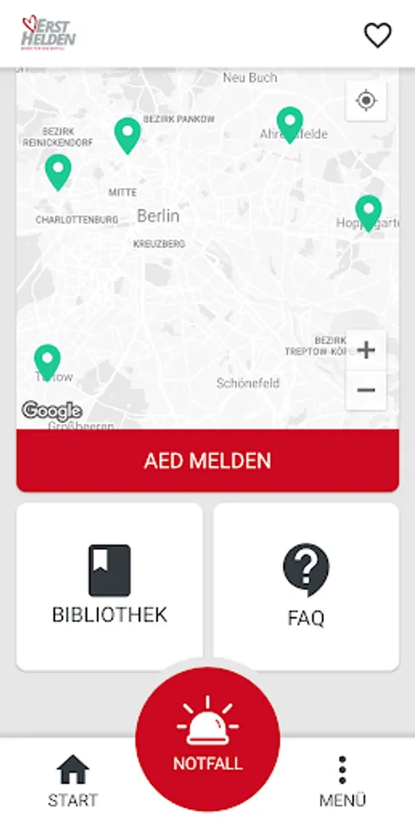The ErstHelden app brings you closer to the subject of "first aid" and helps you find an AED in an emergency.