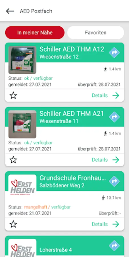 Even experienced first aiders do not know exactly where to go to an AED in such exceptional situations. This is exactly where the app helps you, it shows you the closest AEDs in your area and navigates you there.