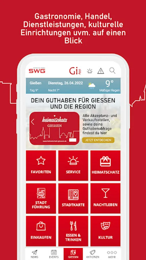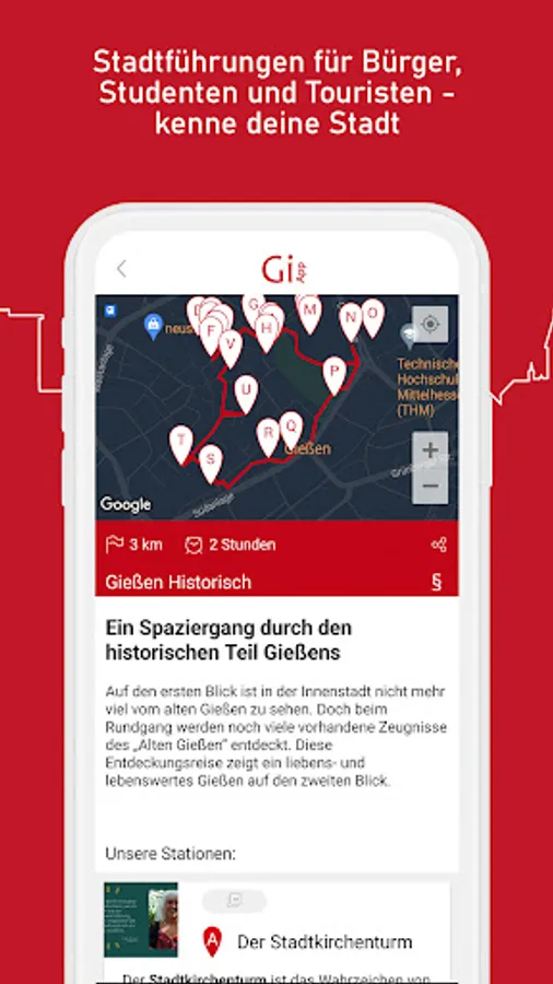 YOUR ideal companion through the entire city and region - the Giessen App! Whether Giessen citizens or tourists, students or pensioners, families or party goers - there is something for everyone! What awaits you in the Gi app: