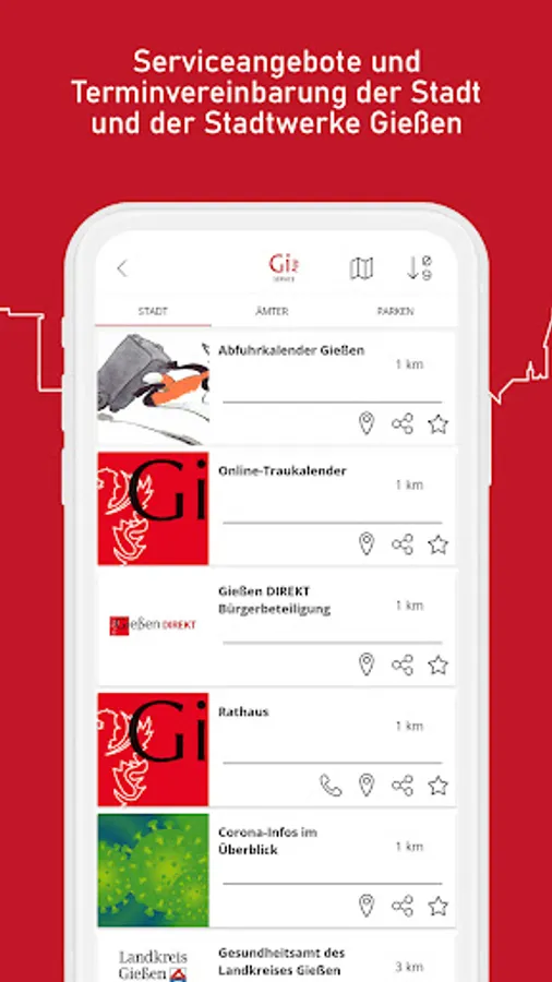 - Useful services offered by the city (such as discharge calendar) and Stadtwerke Gießen