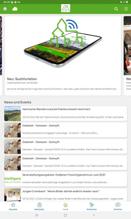The app "digital village life in the district of Gießen" combines a strong community function, information from the town hall and local associations, as well as ensuring basic services through neighborhood help. Find out about the latest news about your community, find interesting people to talk to with the help of the village radio or become active via the digital “bulletin board”.