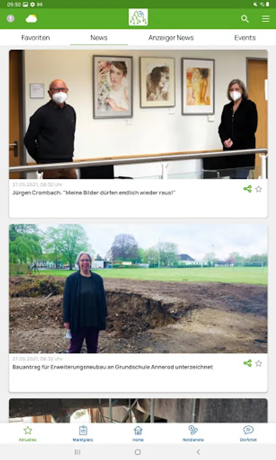 - On the home page, users can find the latest news from their village and community. If you click on the news, the news will appear in full. The users can favor the news or share it on other platforms.