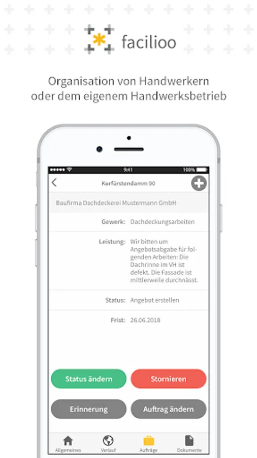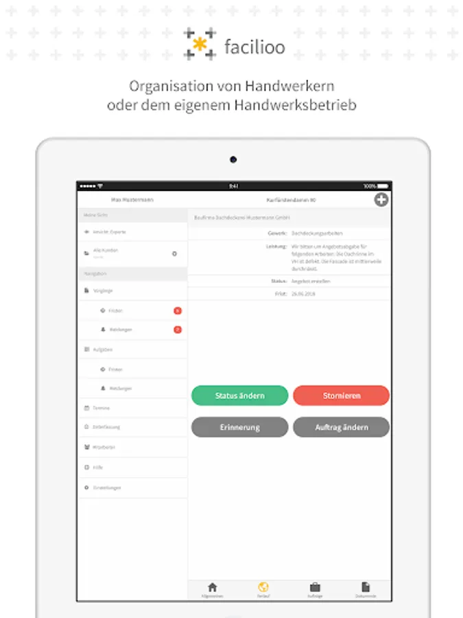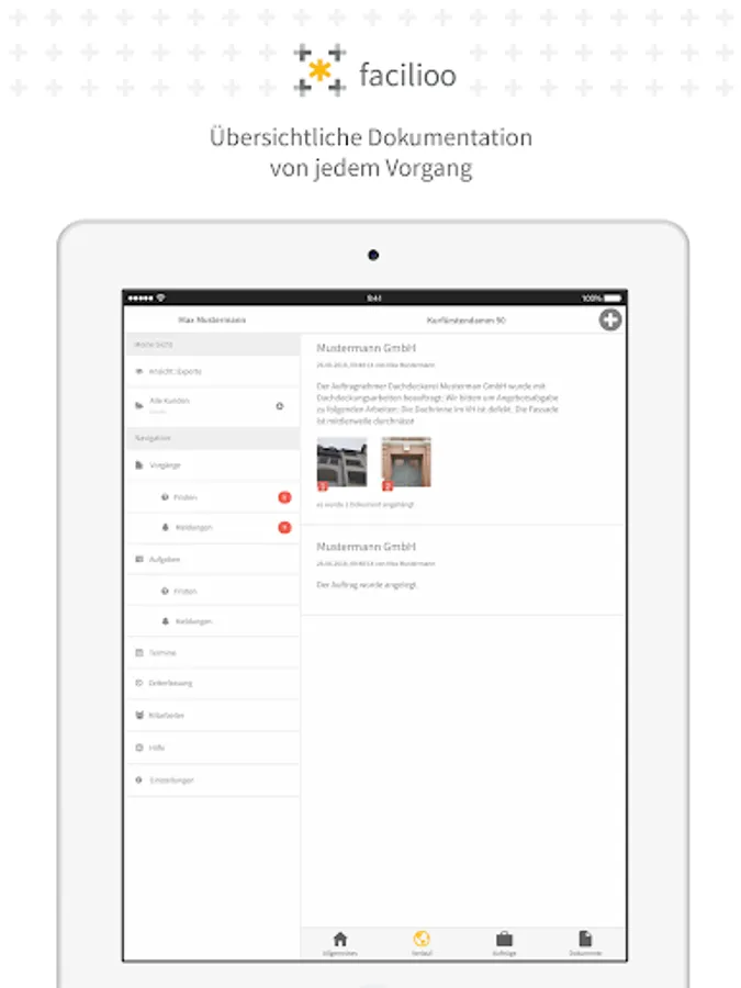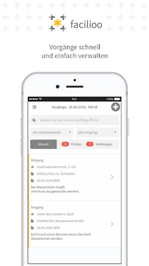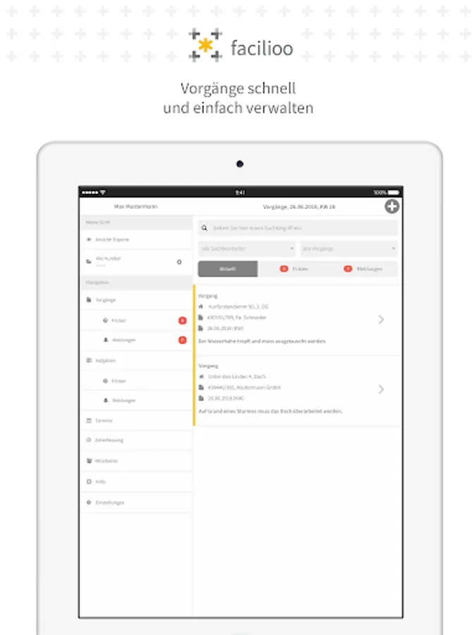 facilioo app - efficient construction and property management for handicraft businesses and property managers. facilioo can both within the company as purely also be used in combination with other participants in the real estate industry.