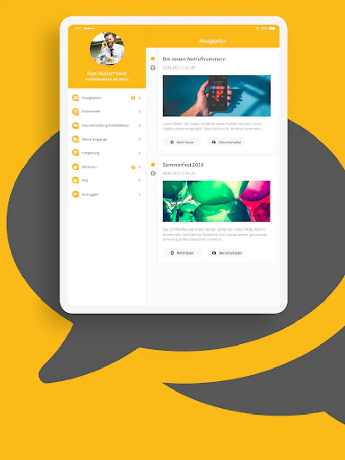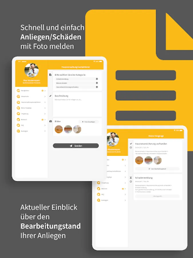 As a tenant or owner, you can report damage or concerns directly with photos using our app. Your inquiries are then available to our employees and can also be forwarded to craft businesses.
