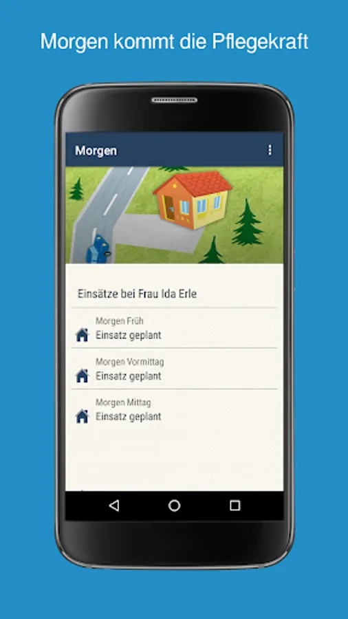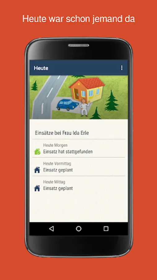 The small app on the smartphone informed and reassured members of care clients. Whether someone was yesterday and today with their parents or grandparents, and whether for tomorrow planned use, the app shows in beautiful illustrations.