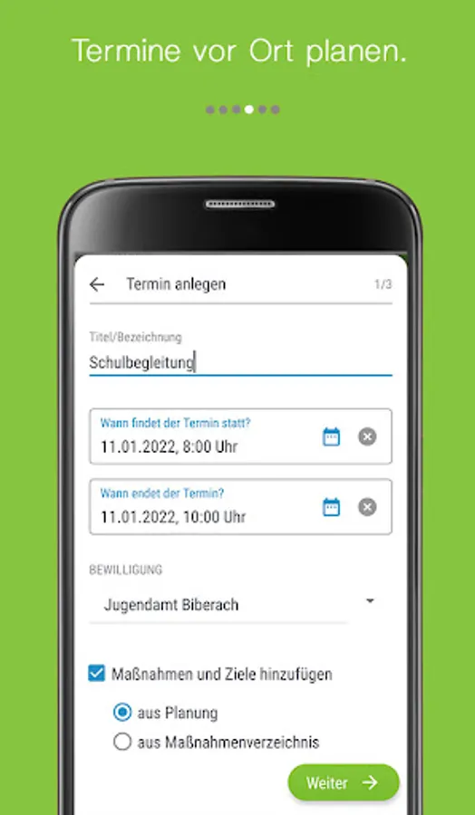 Document your appointments quickly and easily. The individual aid goals, corresponding measures and the budget always in view. This means that the cost unit can be billed securely and promptly.