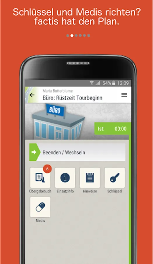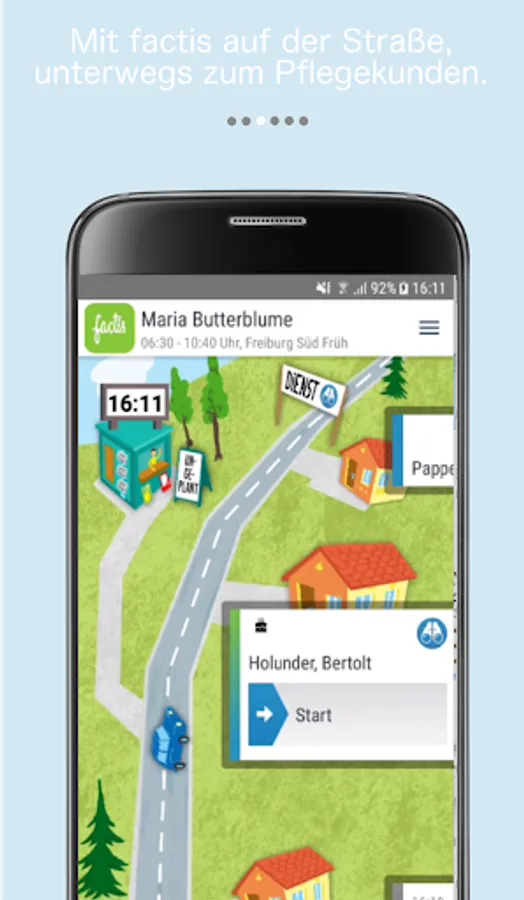 The factis app is available on the smartphone for nursing staff, managers use the factis portal on a PC or tablet. Thanks to our live sync, all information is always up to date. All recorded times, services performed, documented data go back to the nursing software and can be viewed directly by the managers on the PC. This means that every service performed can be quickly checked and billed.