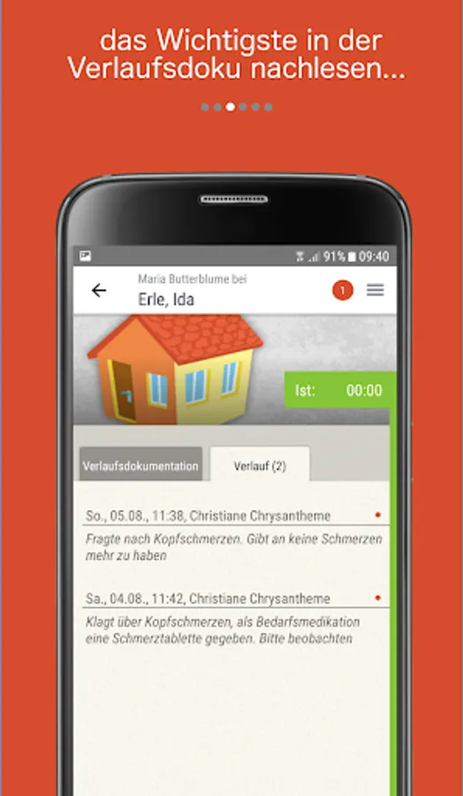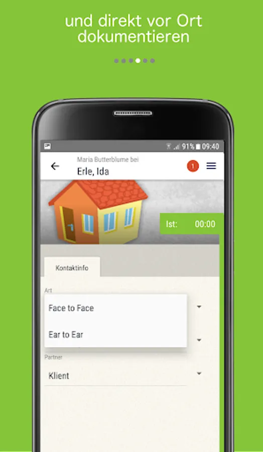 All these data can be entered directly in the app on the smartphone, and the last entries can be read - always up to date - in the course documentation. The contacts of the client are already in there, the call is made by pressing a button. Or you can navigate directly to the client. Everything you need for information on the way, you have it with you.