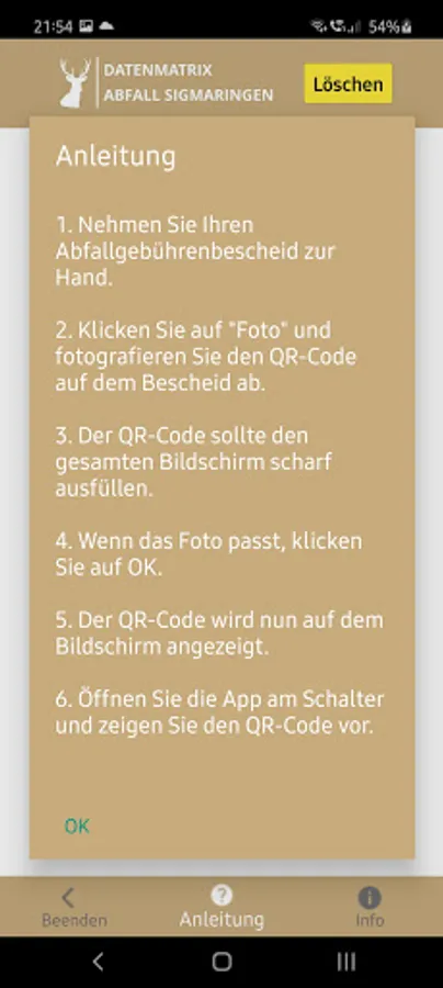 With this app, you can simply show your QR code (the data matrix) at the landfill counter without having to search for it in the gallery of your smartphone.