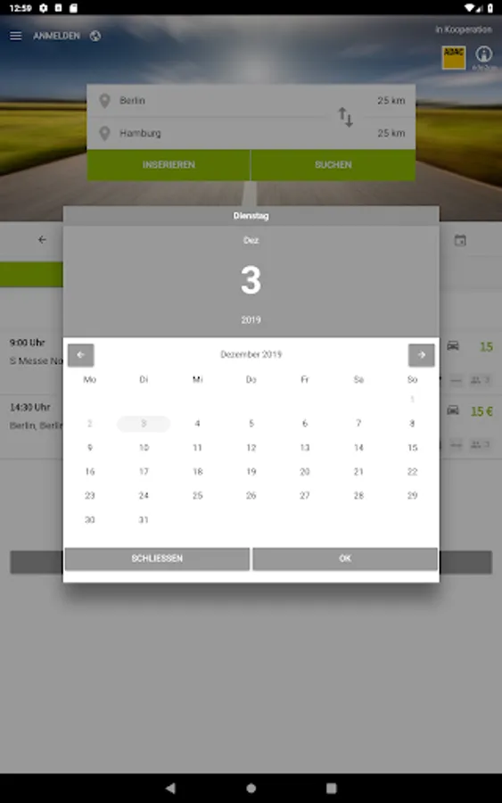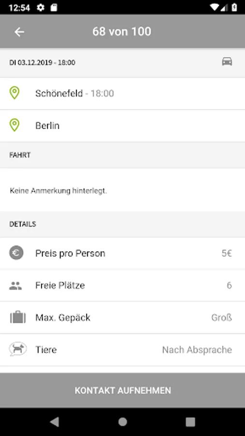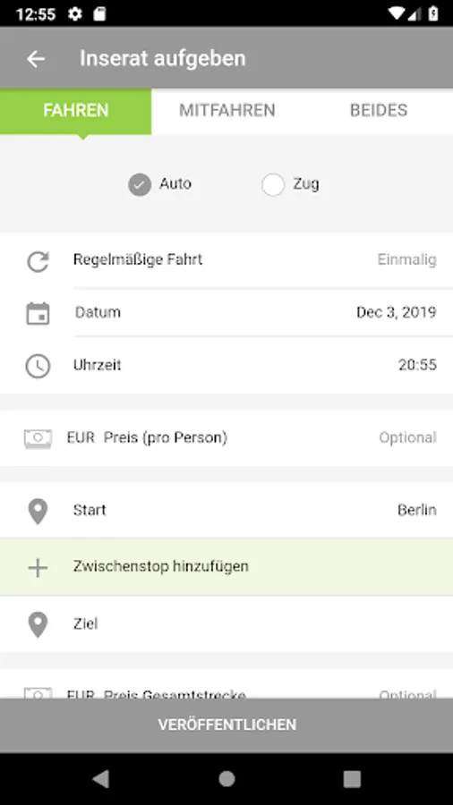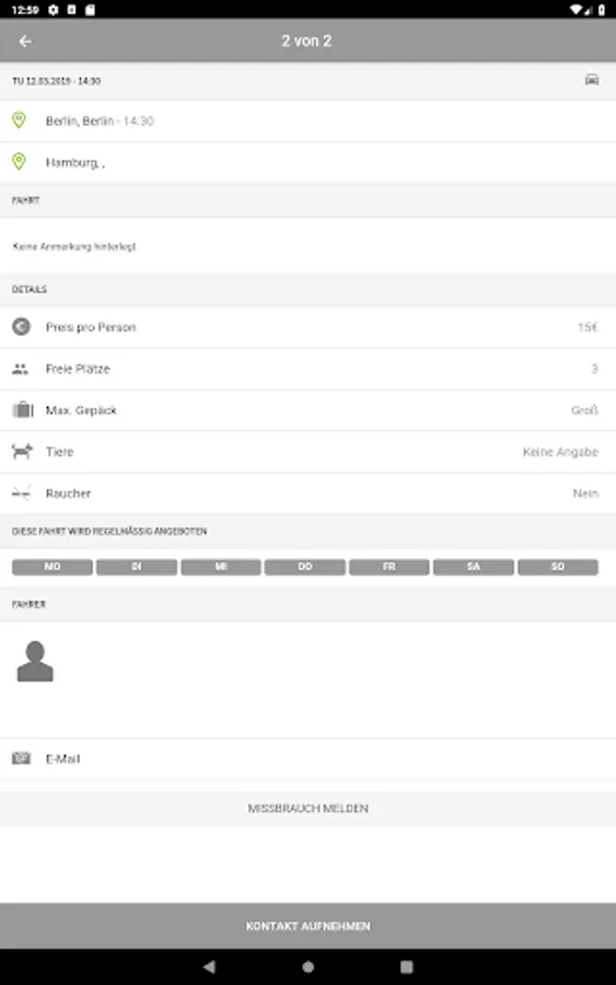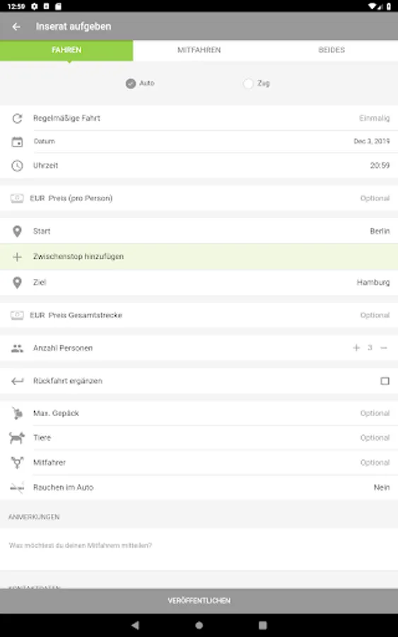 - Optional information/ filter functions for luggage size, gender of the passengers, transport of animals, smoker/non-smoker journey