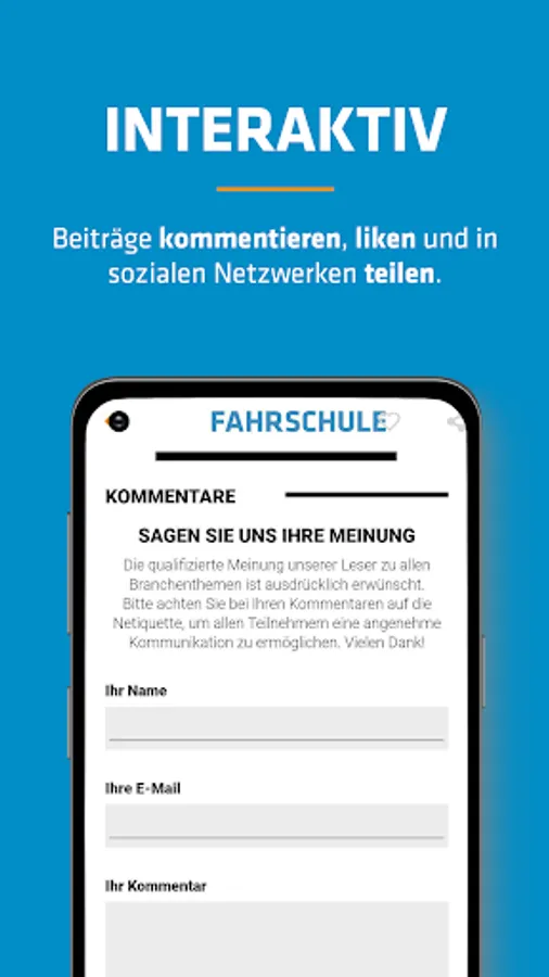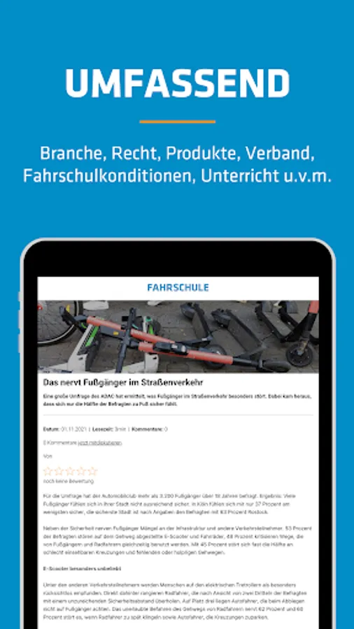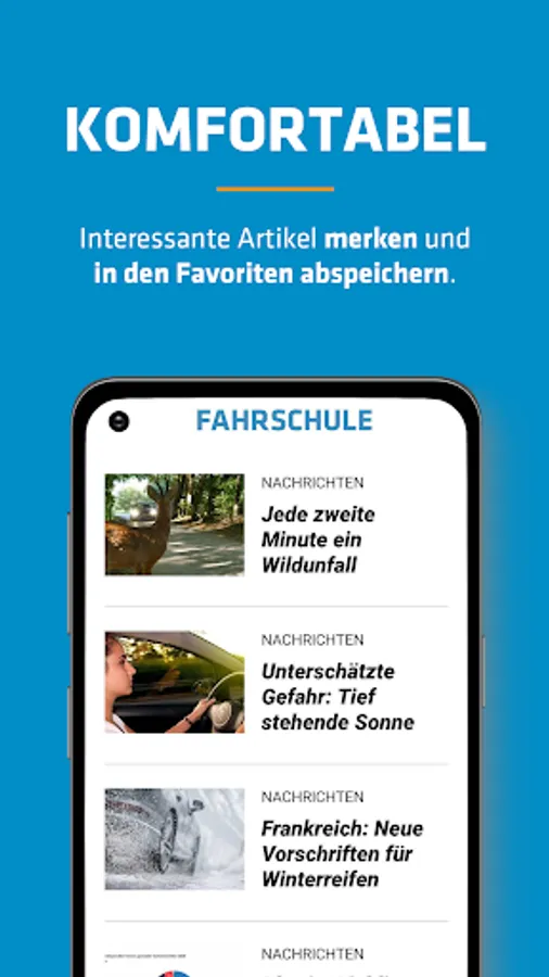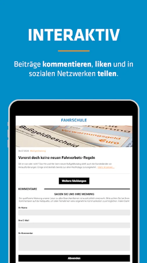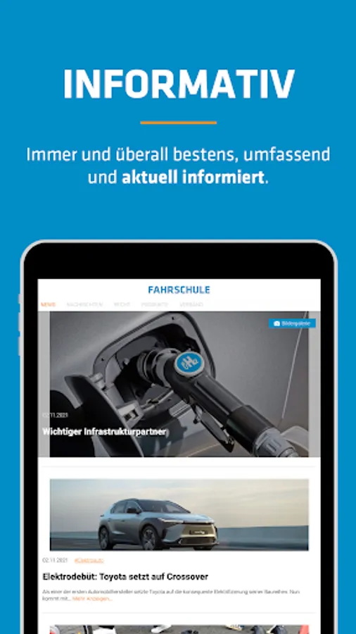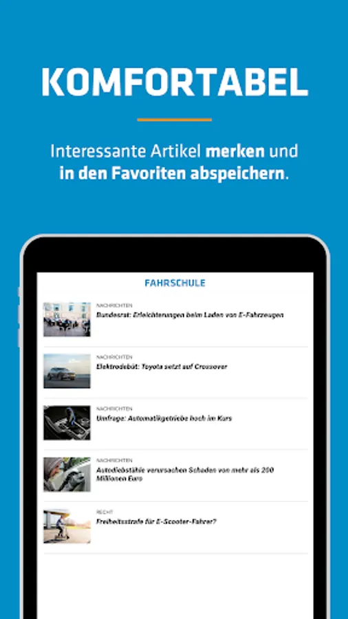 The FAHRSCHULE NEWS app offers daily news as well as reports on products and services for driving school entrepreneurs, employed driving instructors, employees and responsible managers.