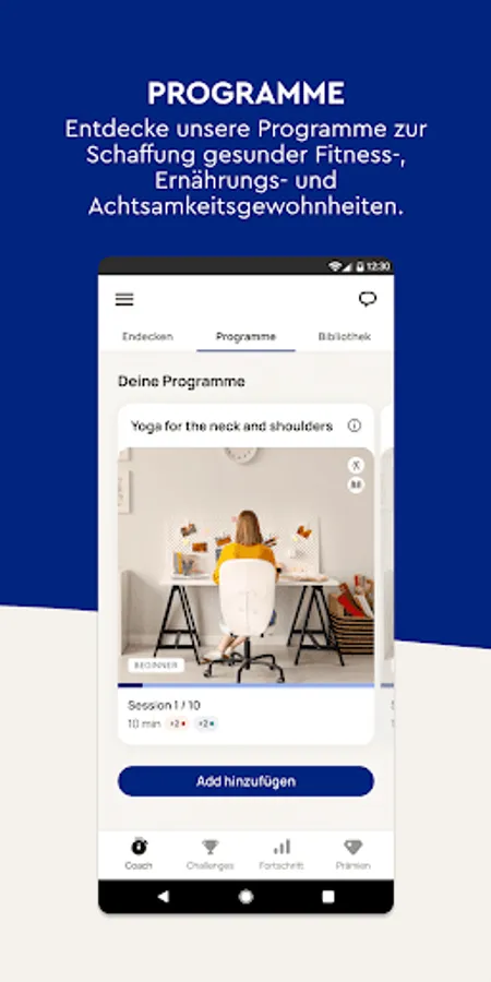 Choose from over 3,000 personalized coaching programs with fitness exercises, yoga and mobility workouts, mindfulness practices, nutrition tips, inspiring recipes & educational programs - any level is welcome.