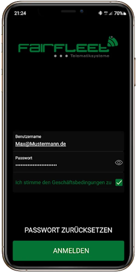 In addition, you need access data to use the Fairfleet Eco app. Please contact your responsible fleet manager for this or directly contact Fairfleet.