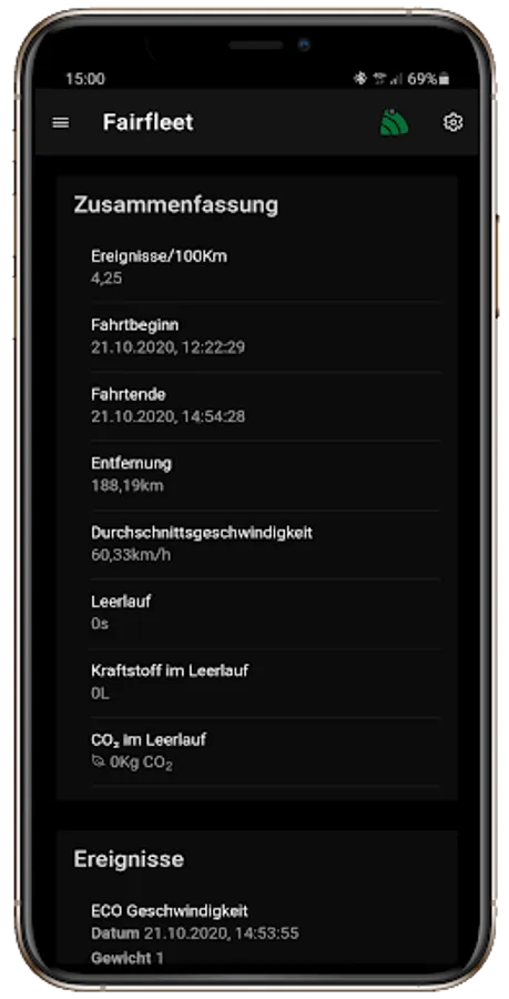 Shortly after the end of the trip, you will receive a trip summary. Additionally, your fleet manager has the possibility to provide you with your improvement potential via personal dashboards.