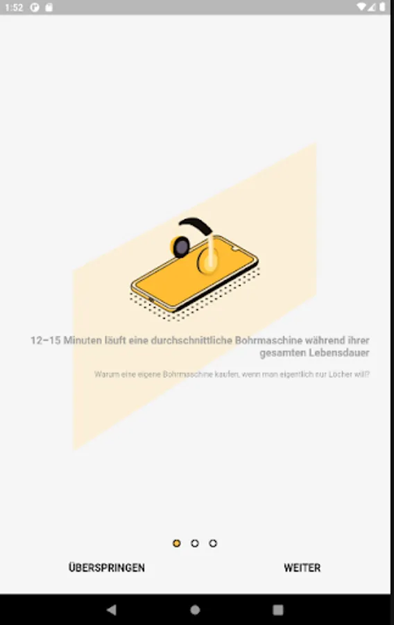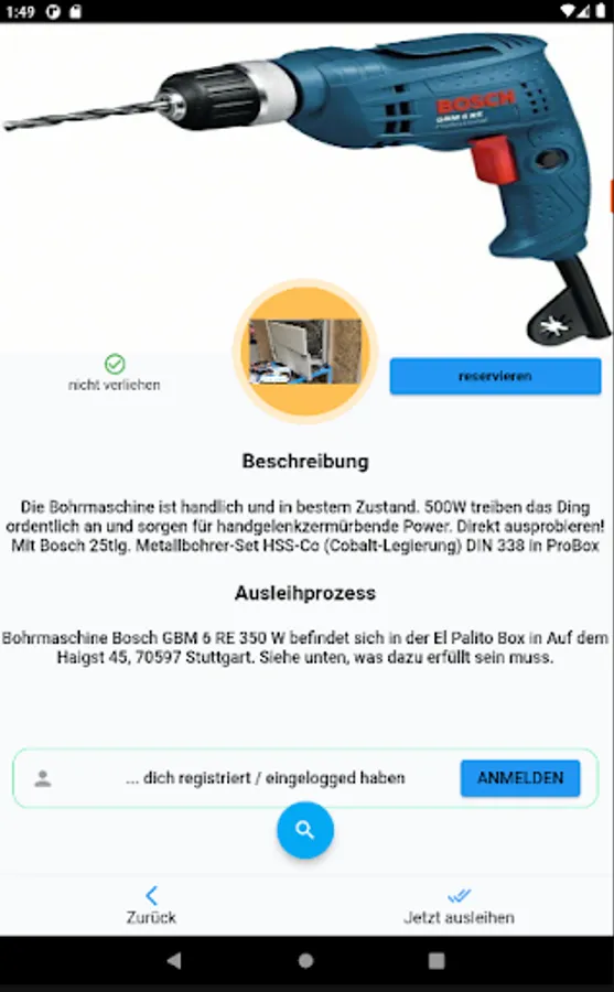The goal of the app is to make sharing easier than buying. To do this, we make places / clubs in your neighborhood where you can already borrow everyday objects more visible. In addition, we have installed rental boxes in your city that can be opened via the app. These contain everyday objects that you can borrow around the clock with the help of the app.
