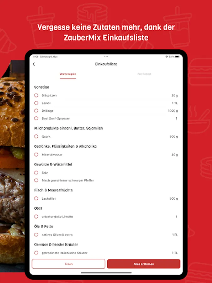 Finally eating better – with a plan. In everyday life, there is often little time to think about your daily diet in peace and quiet. The personal ZauberMix weekly planner helps you to eat tasty and healthy without much stress. Simply schedule recipes, create digital shopping lists, cook and enjoy.