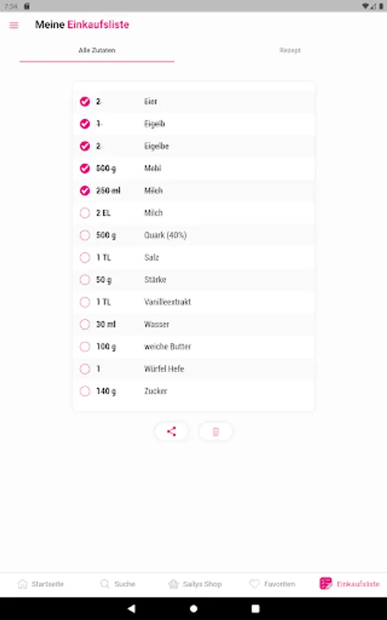 Tailored to your diet, or if you want to cook vegetarian, vegan or gluten-free, you just put your tick in the filter and get Sally's best recipes for this too. Forgot something while shopping? It does not work! Bookmark the recipes you want to copy and put them on the shopping list of the Sally App via one-click.