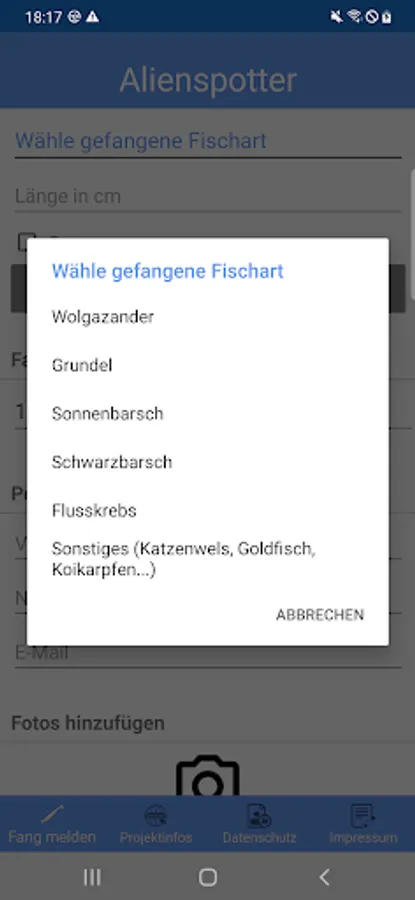 The project "Alienspotter" is a citizen science project initiated by the Anglerverband Niedersachsen e.V. and funded by the Lower Saxony Bingo Environment Foundation, which is primarily aimed at anglers. With the help of the Alienspotter app, anglers can report catches and sightings of non-native fish and crustaceans (so-called aliens) and thus collect valuable data on the distribution of these species in Germany. Have you caught gobies, black bass, sunfish or catfish? Simply upload photos and report the location via the app.
