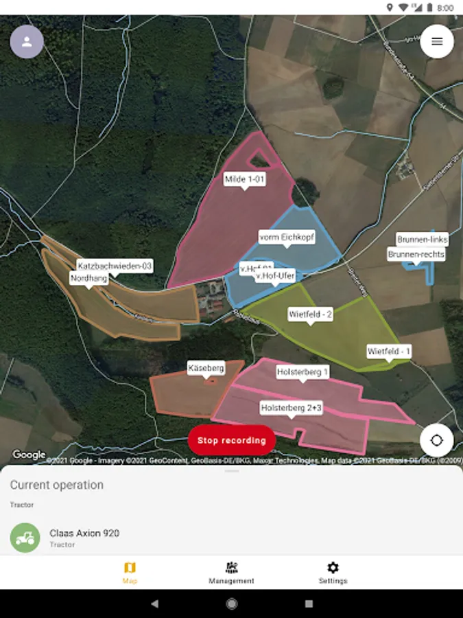 • Display of lanes and positions of your machines and ancillary equipment to optimise transport and harvesting processes