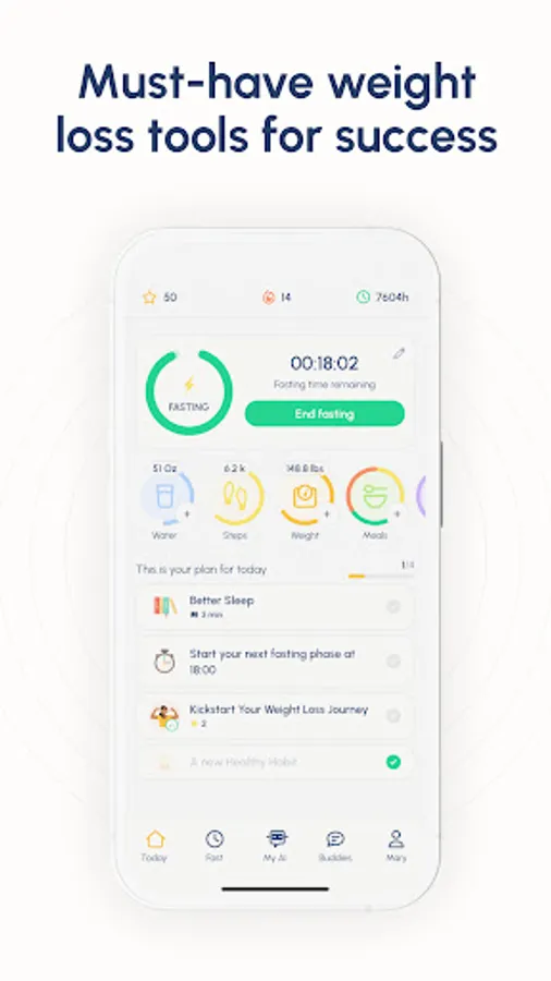 • Explore other popular fasts, including OMAD (one meal a day), the 20:4 fast, and customizable fasts up to 7 days in duration.