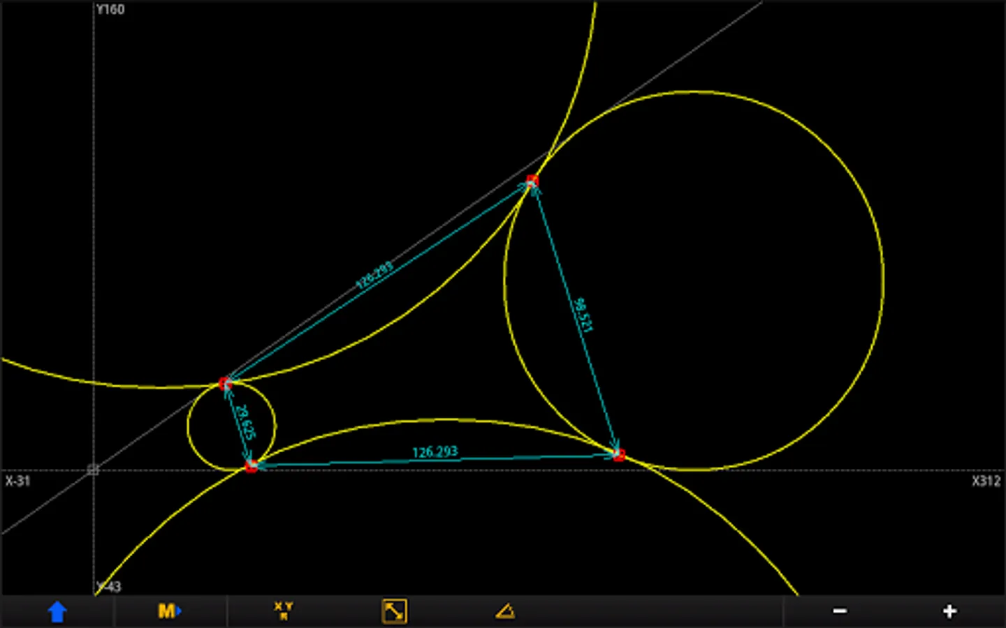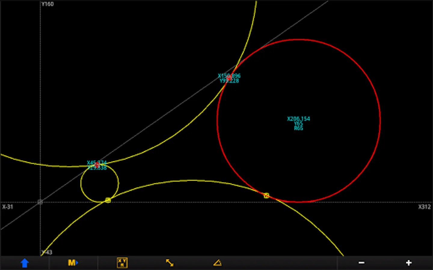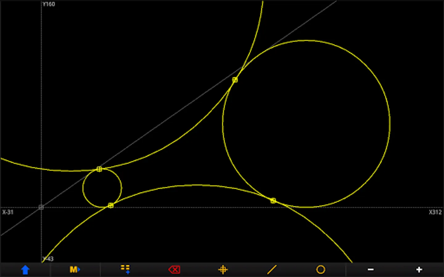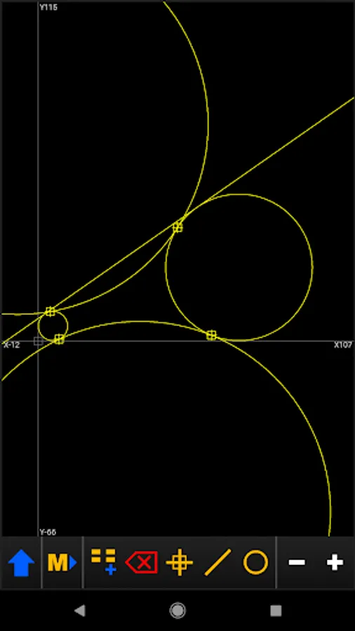 The geometry is constructed with the basic elements of point, line and circle.