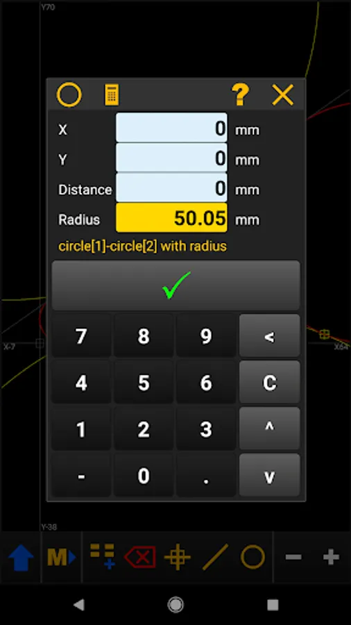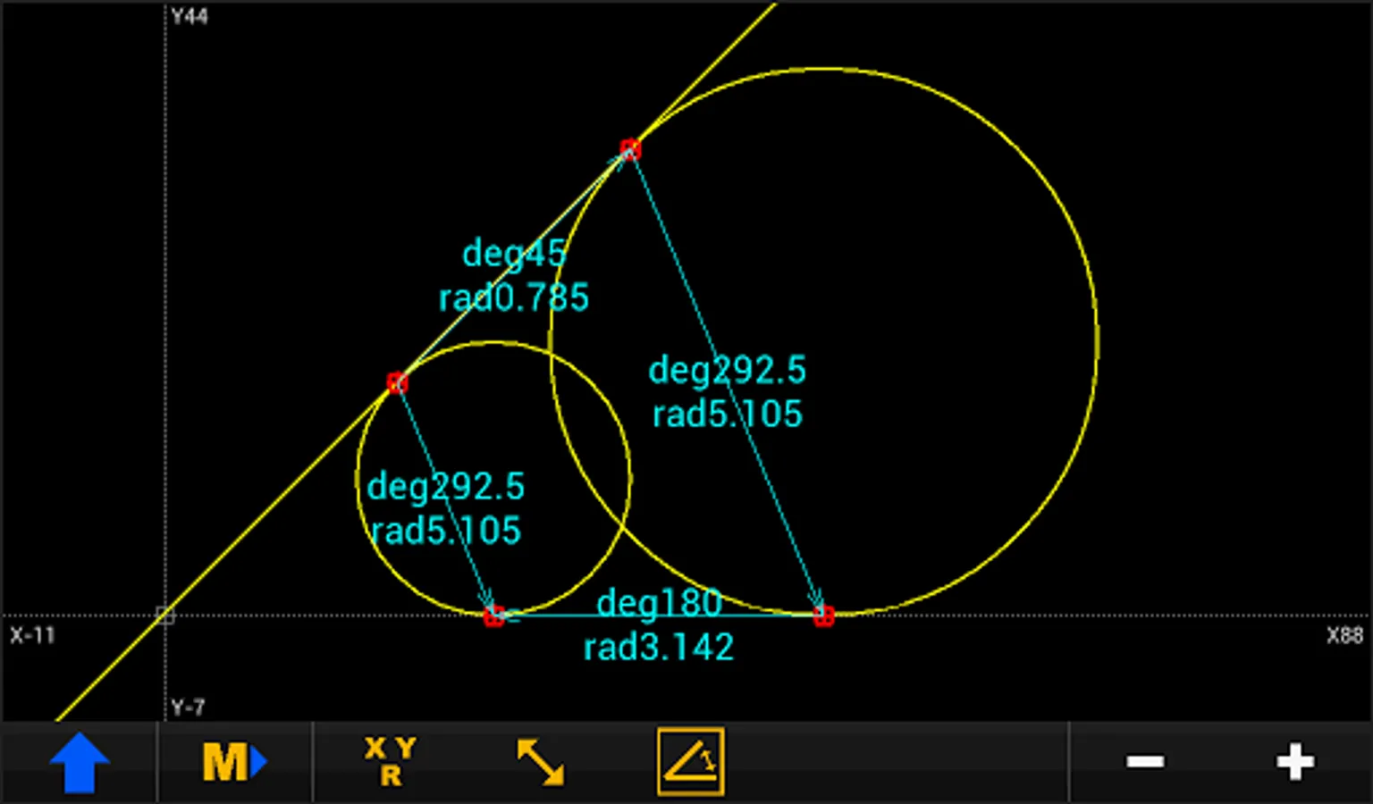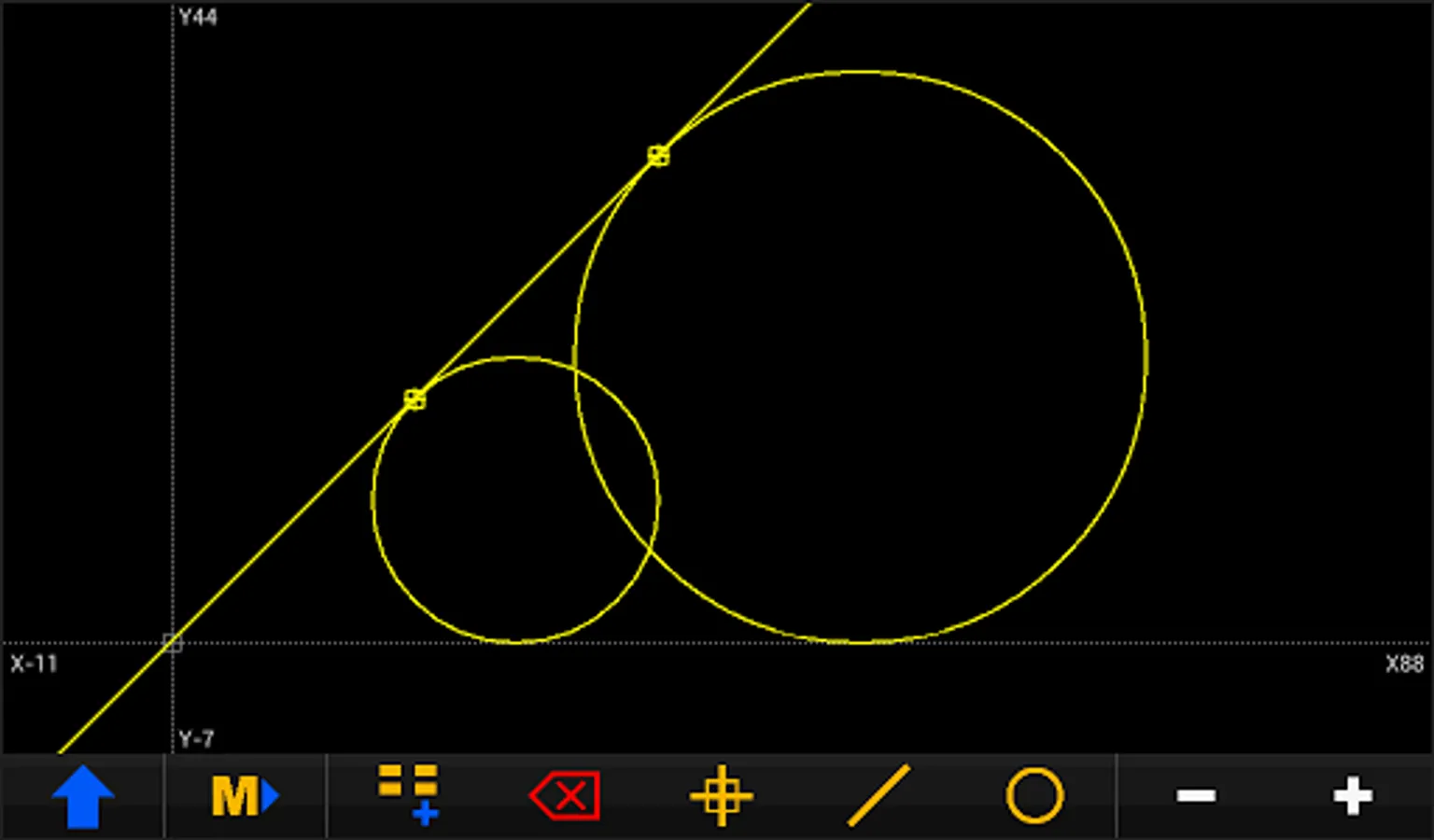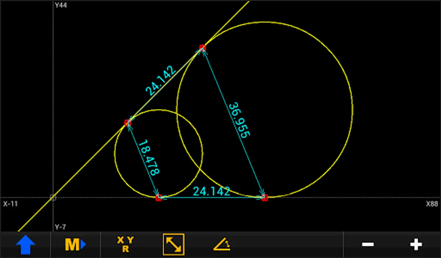 The geometry is constructed with the basic elements of point, line and circle.