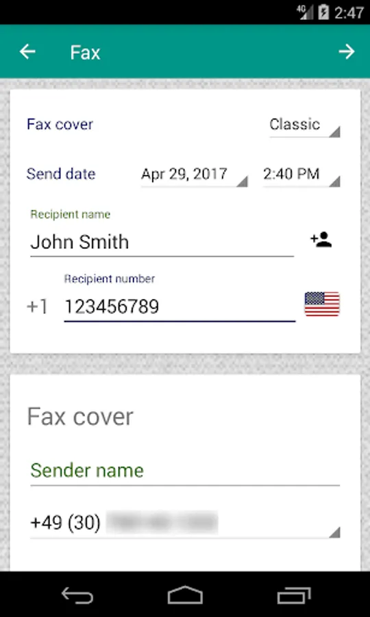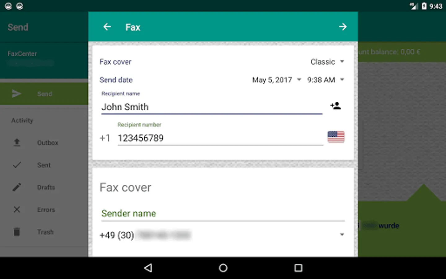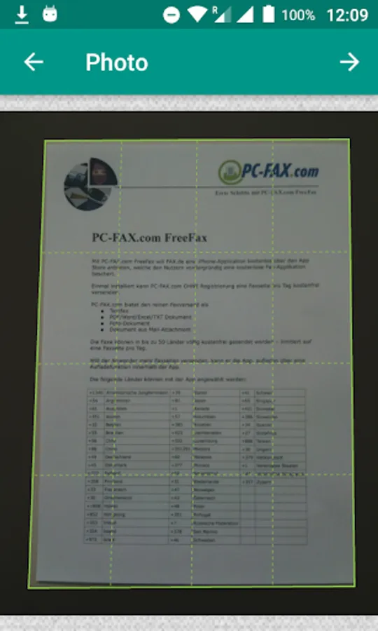 Take a picture of a document with your device and send the document as a fax. Superb quality with good lighting is guaranteed. Or just send a text as a fax.