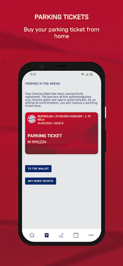 • Digital parking ticket in your Arena Wallet – with in-app payment