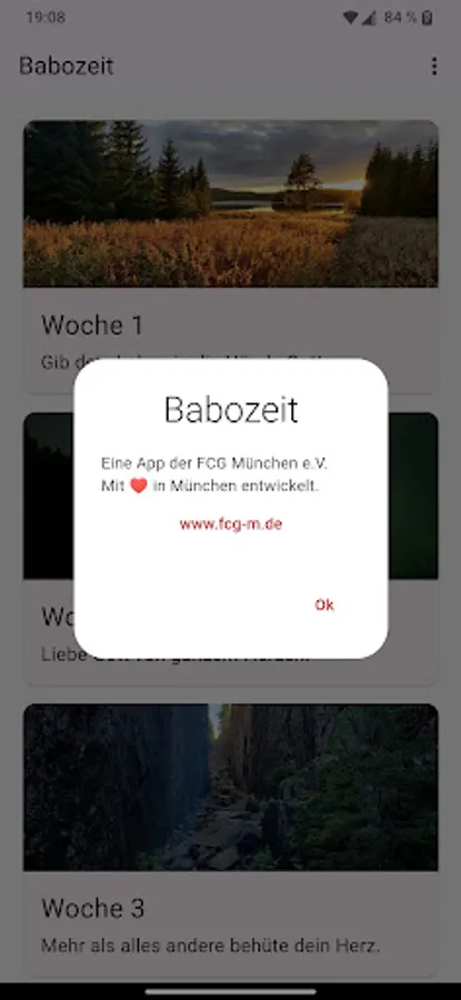 "Babozeit" is an app from "FCG Muenchen e.V.", which enables you to strengthen your relationship with God and experience God's presence in a new way.