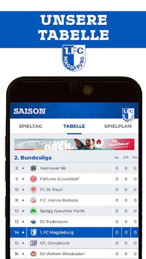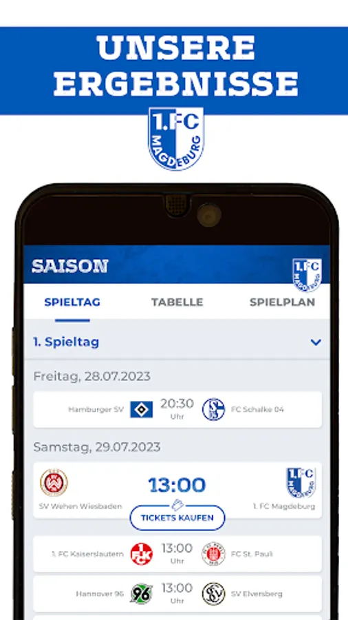 - Information about the MDCC-Arena, barrier-free stadium, KidsClub and job exchange - Direct access to the online ticket shop and merchandising partner “FCMtotal