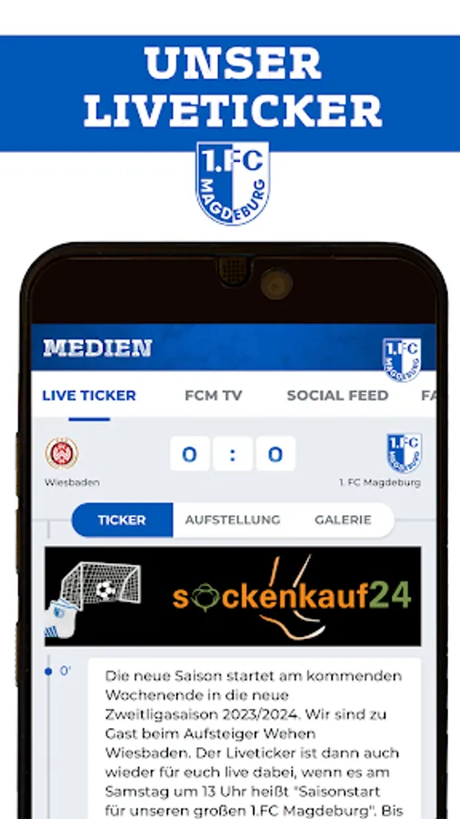 - Media center with live ticker, social feed and FCM.tv videos in direct access - Team overview with current statistics